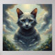 Dieses Fantasieposter zeigt eine graue Katze, die aus einem geheimen Magick-Portal hervorgeht. Dieses Poster ist als Ölfarbe gedruckt.
