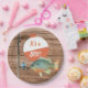 Es ist ein Junge im Text auf einem Fischrober mit Angelpfahl und Barschfisch. Holzhintergrund. In den Sammlungen meines Ladens finden Sie passende Babyduschprodukte. **Art von ©Tina Hesskew of Fishing Hunting Life.