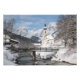 Die Kirche im Schnee mit den Alpen im Winter Fotodruck