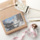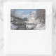 Die Kirche im Schnee mit den Alpen im Winter Rechteckiger Aufkleber