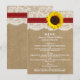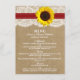 Die Kraft-, Spitzen- und Sonnenblumenkollektion ist ein atemberaubendes Design mit einem hübschen, rustikalen Kraft-Papiereffekthintergrund mit einem romantischen Vintagen, weißen Spitzen-Effekt-Trimm, der mit einer atemberaubenden Sonnenblume und einem roten Farbbandeffekt vollendet wird. Diese Menüs können für Ihren besondere Anlass personalisiert sein und würden die perfekte Vorlage für Hochzeitsmenüs, Brautparty-Menüs, Partnermenüs, Geburtstagsmenüs und vieles mehr machen. *Bitte beachten Sie, dass Zazzle nur gedruckte Produkte verkauft, sodass dieses Produkt keine echten Spitzen-, Sonnenblumen- oder Farbbandmaterialien enthält. ÜBERPRÜFEN SIE DIE ENTSPRECHENDEN ELEMENTE FÜR DIESE ERHEBUNG