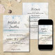 Das Watercolor Beach Coastal Destination All in One Wedding Invitation ist ein schönes und einzigartiges Einladungs-Design, das das Wesen einer romantischen Hochzeit am Strand einfängt. Diese Einladung zeigt ein Aquarellbild einer Küstenlandschaft mit Sandstränden, blauen Ozeangewässern und Seegras, die in der Brise schweben. Die Einladung ist ein All-in-One-Design, was bedeutet, dass alle notwendigen Details für die Hochzeit, wie die Zeremonie Ort, Datum und Zeit, Empfang-Informationen und UAWG, in einem bequemen Paket enthalten sind. Das Design ist auf hochwertigem Karton gedruckt und enthält Briefumschläge. Das Wasserfarbenthema am Strand eignet sich ideal für Paare, die eine Hochzeit in Urlaubsort oder eine Hochzeitsfeier am Strand planen. Die Einladung Set den Ton für eine entspannte, romantische und intime Hochzeitsfeier mit entspannter Küsten-Atmosphäre. Die Einladung richtet sich auch an Paare, die die natürliche Schönheit des Strandes schätzen und gewollt haben, ihn in ihren Hochzeitstag zu integrieren.