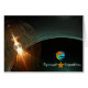 In Shiny, Golden Fractal Image, Los of a cross between a Fresnel lens and a bird cage, Represent für Soviet-era Lunar Landing Modul. The image is superimsed on an a background resembling the dark side of the moon and stars. Russian "Russian у Text лын or - lunar appears, bracketing Red Star. The Soviet Union developed a lunar lander intending to land two cosmonauts on the moon before the United States could do so. The vehicle was successfully tested in earth orbit four times. Development problems with the rocket intended to take it to the moon led to the cancellation of the USSR's manned lunar program.