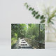 Weg durch den Wald, mit Zitat der Ermutigung: Die längste Reise beginnt mit einem Single.