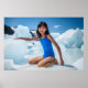 Ein lebendiges Poster einer KI generierte Bild von japanischem Schulmädchen inmitten eisgletscherischer Landschaft.
