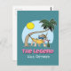Dieses entspannte Design besticht durch einen sorglosen Cartoon-Charakter, der in einer Hängematte zwischen einer Palme mit einer Flasche erfrischenden Drinks auf seiner Seite liegt. Der Text "The Legend Has Remüde" wird in spielerischer Schrift dargestellt, indem eine Touch Spaß hinzugefügt wird und ein Leben der Freizeit gefeiert wird.