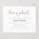 Hoppla! Unvorhergesehene Umstände passieren, und wenn sie es tun, können Sie leicht gelassen Ihre Gäste in einer lustigen und einfachen Weise wissen, dass Sie Ihre Hochzeit mit dieser minimalistischen Schwarz-Weiß-Aufschiebungskarte verzögern müssen. In einem schicken Kalligraphie-Schriftart mit klassischer Serifentypografie "Liebe ist geduldig" fühlen. Im Rahmen der Budgetauswahl hier auf Zazzle kommen diese Einladungen nicht mit Umschlägen und passen nicht einfach in einen Standard-Umschlag. Die nahe Größe ist A6, aber es wird eine Lücke von ca. 10 cm geben. Wenn es Ihnen an Sicherheit fehlt, können Sie so weit verfügbare A6-Umschläge verwenden. Andernfalls kann dieses Design über das Design Transfer Tool in ein Standardformat (das mit Umschlägen geliefert wird) übertragen werden. Als grober Leitfaden würden zum Zeitpunkt des Schreibens 100 Einladungen zum Haushalt (einschließlich eines Mengenrabatts) etwa 39 Dollar kosten, während 100 Standardeinladungen einschließlich Umschläge etwa 135 Dollar kosten würden. Ihre Meilen können je nach den verfügbaren Promo-Codes von Zazzle, dem standortweiten Verkauf oder den Preisänderungen variieren.