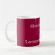 Eine weiße und rosa Tasse mit lateinischer Phrase und der englischen Übersetzung darunter; "Liebhaber erinnern sich an alles".