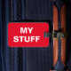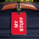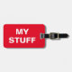 Die lustige rote Gepäckmarke mit "My Stuff" auf ihr geschrieben