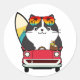 Die lustige Katze fährt zum Strand Runder Aufkleber