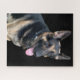 Ein schöner deutscher Schäferhund schmückt dieses lustige Rätsel