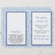 Die schlichte und elegante moderne Paisley-Hochzeitskollektion ist ein atemberaubendes Design mit einem hübschen Paisleyprint in Weiß und Blau, das sich perfekt für jede moderne Hochzeitsfeier eignet. Diese Programme können für Ihren besondere Anlass personalisiert sein und würden die perfekte Reihenfolge für Ihre Hochzeit, Brautparty, Verlobung Party, Geburtstagsparty und viele andere besondere Anlässe machen. Fügen Sie diesem Design Ihre benutzerdefinierte Formulierung hinzu, indem Sie die "Diese Vorlage bearbeiten"-Felder auf der rechten Seite des Elements verwenden, oder klicken Sie auf die blaue Schaltfläche "Anpassen", um den Text anzuordnen, die Schriftart und Farben zu ändern und um diesem Design zusätzliche Informationen oder Bilder hinzuzufügen. ÜBERPRÜFEN SIE DIE ENTSPRECHENDEN ELEMENTE FÜR DIESE ERHEBUNG