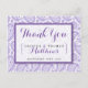 Die moderne Paisley-Hochzeitskollektion ist ein atemberaubendes Design mit einem hübschen Paisleyprint in sanften lila-weißen Farbtönen, das sich perfekt für jede moderne Hochzeitsfeier eignet. Diese Dankkarten können für Ihren besondere Anlass personalisiert sein und würden das perfekte Dankeschön für Ihre Hochzeit, Brautparty, Verlobungsfeier, Geburtstagsparty und viele weitere besondere Anlässe machen. Fügen Sie diesem Design Ihre benutzerdefinierte Formulierung hinzu, indem Sie die "Diese Vorlage bearbeiten"-Felder auf der rechten Seite des Elements verwenden, oder klicken Sie auf die blaue Schaltfläche "Anpassen", um den Text anzuordnen, die Schriftart und Farben zu ändern und um diesem Design zusätzliche Informationen oder Bilder hinzuzufügen. ÜBERPRÜFEN SIE DIE ENTSPRECHENDEN ELEMENTE FÜR DIESE ERHEBUNG