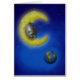 Ein Spielzeug wie ein Roboter fischen auf dem Mond, der den Planeten Erde übersieht