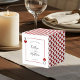 Feiern Sie stilvoll mit diesen eleganten und sehr trendigen Gastgeschenk Hochzeiten. Das Design ist leicht mit Ihrer eigenen Formulierung zu personalisieren und Ihre Familie und Freunde werden begeistert sein, wenn sie diese fabelhaften Gefälligkeitsboxen erhalten. Matching-Elemente finden Sie in der Auflistung.