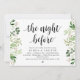 Moderne Rustikale Grüne Eukalyptus, Schwarz-Script-Einladungskarte (mit Kartentitel: Nacht vor). Es ist ideal für Ihre Hochzeit Probe Dinner Party Feiern, vor Ihrem besten Tag. Fügen Sie Ihre Daten in passender schwarzer Schriftart / Schrift hinzu. #TeeshaDerrick