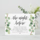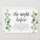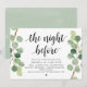Moderne Rustikale Grüne Eukalyptus, Schwarz-Script-Einladungskarte (mit Kartentitel: Nacht vor). Es ist ideal für Ihre Hochzeit Probe Dinner Party Feiern, vor Ihrem besten Tag. Fügen Sie Ihre Daten in passender schwarzer Schriftart / Schrift hinzu. Mit unserer modernen Green Eukalyptus Theme Design Hochzeit Probe feiern Einladungskarte geben Sie Ihr Glück immer wieder im Stil. Es ist ideal für Paare, die sich entschieden haben, die Nacht vor ihrem großen Tag zu feiern. Mit seinem ausgeklügelten und spielerischen Design wird diese Einladung den Ton für ein unvergessliches Ereignis Set. Die Einladungskarte zeichnet sich durch ein grünes Design aus, das Ihren Feiern eine Touch zeitloser rustikaler Eleganz verleiht. Designed by TeeshaDerrick