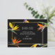 Die Paradiesvögel, mit Blumen danken Ihnen Karten. Drastischer schwarzer Hintergrund mit hellen Paradiesvögeln Blumen. Zusätzlich, tropische, moderne Hochzeit koordinierend, sind Versorgungen bei MetroEvents auf Zazzle verfügbar.