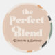 Mit dem runden Aufkleber The Perfect Blend mit boho-inspiriert neutraler Farbpalette und modernem geometrischem Bogendesign fügen Sie Ihren Gastgeschenke Hochzeiten eine bezaubernde Touch hinzu. Dieser individuell anpassbare Aufkleber enthält Ihre Namen für eine persönliche Touch und eignet sich ideal zum Versiegeln von Kaffeebeuteln, Gefälligkeitsboxen oder Leckerei-Taschen. Ideal für kaffeespezifische Hochzeiten, Verlobungsfeiern oder Jubiläumsfeiern, ist es ein stilvolles und praktisches Detail, das die Gäste Liebe finden werden.