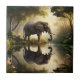 Eine hübsche, ruhige ai-Abbildung eines im Wald stehenden Elefanten, der im Wasser reflektiert.