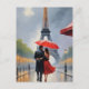 Mit diesem atemberaubenden Gemälde, das das Wesen der Liebe inmitten des zeitlosen Charmes der Stadt vereint, gelangen Sie in die bezaubernden Straßen von Paris. Ein elegant gekleidetes Paar teilt sich einen zarten Moment unter einem lebendigen roten Schirm und schafft einen auffallenden Kontrast zu den regengetränkten Kopfsteinen. Der Eiffelturm, ein ewiges Symbol der Romantik, erhebt sich majestätisch im mistigen Hintergrund, seine Silhouette ist ein Versprechen von Träumen und Abenteuern.