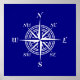 Ocean nautical Thema Küstendekoration im Vintagen Stil weißen nautischen Kompass Rose auf blau. Nautische Designs für Küsten- oder Stranddekor. Ideal für eine Hütte am Meer oder ein Strandhaus.