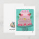 Großartig und prächtig, dieses Stück zeigt eine aufragende dreistöckige Torte vor einem reichen Teal-Hintergrund. Der Kontrast zwischen dem tiefen Hintergrund und den üppigen, realistischen rosa Rosen erzeugt eine atemberaubende visuelle Tiefe.