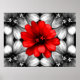 Eine wunderschöne rote, dunkle Blume in der Mitte, inmitten einer Collage aus schwarz-weißen, dunklen Blume. Wage, anders zu sein.