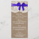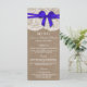 Die rustikal blaue Bogen Hochzeitskollektion ist ein atemberaubendes Design mit einem hübschen rustikalen Burlap-Effekt-Hintergrund mit einem romantischen Vintagen Spitzeneffekt und einem atemberaubenden blauen Bogen. Diese Menüs können für Ihren besondere Anlass personalisiert sein und würden die perfekte Vorlage für Hochzeitsmenüs, Brautparty-Menüs, Partnermenüs, Geburtstagsmenüs und vieles mehr machen. *Bitte beachten Sie, dass Zazzle nur gedruckte Produkte verkauft, sodass dieses Produkt keine echten Bruch-, Spitzen- oder Bänder-/Bogen-Materialien aufweist.