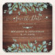 Laden Sie Freunde und Familie zu Ihrer Hochzeit mit diesen rustikalen Holz und eukalyptus Hochzeit speichern Sie das Datum Untersetzer. Personalisieren Sie Ihre Daten mit Namen und Datum. Diese einzigartigen grünen Hochzeitsfeier-Untersetzer sind mit Eukalyptus-Sukkulenten aus rustikalem Holz gestaltet. COPYRIGHT © 2020 Judy Burrows, Black Dog Art - Alle Rechte vorbehalten. Rustikale Eukalyptus-Hochzeit speichert den Untersetzer für das Date Square Papier
