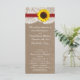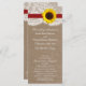 Die rustikale Sonnenblumenkollektion ist ein atemberaubendes Design mit einem hübschen rustikalen Burleffekt-Hintergrund und einem romantischen Vintagen Spitzeneffekt, der mit einer atemberaubenden Sonnenblume und einem roten Band vollendet wird. Diese Programme können für Ihren besondere Anlass personalisiert sein und würden die perfekte Vorlage für Hochzeiten, Brautpartys, Verlobungsfeiern, Geburtstagsfeiern und vieles mehr machen. *Bitte beachten Sie, dass Zazzle nur gedruckte Produkte verkauft, sodass dieses Produkt keine echten Bruch-, Spitzen-, Sonnenblumen- oder Farbbandmaterialien enthält. ÜBERPRÜFEN SIE DIE ENTSPRECHENDEN ELEMENTE FÜR DIESE ERHEBUNG