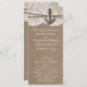 Die rustikale Hochzeitskollektion für den nautischen Anker ist ein atemberaubendes Design mit einem schönen rustikalen Beinschlaffeffekt-Hintergrund und einem romantischen, Vintagen, weißen Spitzeneffekt, der mit einem nautischen Anker und Schwanz vollendet ist. Diese Programme können für Ihren besondere Anlass personalisiert sein und würden die perfekte Vorlage für Hochzeiten, Brautpartys, Verlobungsfeiern, Geburtstagsfeiern und vieles mehr machen. *Bitte beachten Sie, dass Zazzle nur gedruckte Programme verkaufen kann, sodass dieses Produkt keine echten Bruch-, Spitzen-, Anker- oder Garnmaterialien enthält.