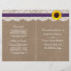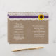 Die rustikale Sonnenblumenkollektion ist ein atemberaubendes Design mit einem hübschen rustikalen Burleffekt-Hintergrund und einem romantischen Vintagen Spitzeneffekt, der mit einer atemberaubenden Sonnenblume und einem lila Band vollendet wird. Diese Programme können für Ihren besondere Anlass personalisiert sein und würden die perfekte Vorlage für Hochzeiten, Brautpartys, Verlobungsfeiern, Geburtstagsfeiern und vieles mehr machen. *Bitte beachten Sie, dass Zazzle nur gedruckte Produkte verkauft, sodass dieses Produkt keine echten Bruch-, Spitzen-, Sonnenblumen- oder Farbbandmaterialien enthält. ÜBERPRÜFEN SIE DIE ENTSPRECHENDEN ELEMENTE FÜR DIESE ERHEBUNG