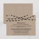 Die schlichte und elegante Saitenleuchte der rustikalen Kraft Hochzeitskollektion ist ein atemberaubendes Design mit schönen schwarzen Hängeleuchten auf einem Kraft-Effekt-Hintergrund, der sich perfekt für jede rustikale Hochzeitsfeier eignet. Diese Beilagen können für Ihren besondere Anlass personalisiert sein und würden die perfekte Details, Informationen, Unterkunft, Leitung, Geschenkregister oder wünscht gut Karte für Ihre Hochzeit, Brautparty, Verlobung Party, Geburtstagsparty und viele andere besondere Anlässe machen. Fügen Sie diesem Design Ihre benutzerdefinierte Formulierung hinzu, indem Sie die "Diese Vorlage bearbeiten"-Felder auf der rechten Seite des Elements verwenden, oder klicken Sie auf die blaue Schaltfläche "Anpassen", um den Text anzuordnen, die Schriftart und Farben zu ändern und um diesem Design zusätzliche Informationen oder Bilder hinzuzufügen. Entsprechende Hochzeitssachen finden Sie in der Sammlung.