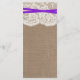 Die rustikale lila Bogen-Hochzeitskollektion ist ein atemberaubendes Design mit einem hübschen rustikalen Burlap-Effekt-Hintergrund mit einem romantischen Vintagen, weißen Spitzeneffekt und einem atemberaubenden lila Bogen. Diese Menüs können für Ihren besondere Anlass personalisiert sein und würden die perfekte Vorlage für Hochzeitsmenüs, Brautparty-Menüs, Partnermenüs, Geburtstagsmenüs und vieles mehr machen. *Bitte beachten Sie, dass Zazzle nur gedruckte Produkte verkauft, sodass dieses Produkt keine echten Bruch-, Spitzen- oder Bänder-/Bogen-Materialien aufweist.