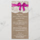 Die rustikale rosa Bogen Hochzeitskollektion ist ein atemberaubendes Design mit einem hübschen rustikalen Burlap-Effekt-Hintergrund mit einem romantischen Vintagen Spitzeneffekt und einem atemberaubenden rosa Bogen. Diese Menüs können für Ihren besondere Anlass personalisiert sein und würden die perfekte Vorlage für Hochzeitsmenüs, Brautparty-Menüs, Partnermenüs, Geburtstagsmenüs und vieles mehr machen. *Bitte beachten Sie, dass Zazzle nur gedruckte Produkte verkauft, sodass dieses Produkt keine echten Bruch-, Spitzen- oder Bänder-/Bogen-Materialien aufweist.