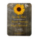 Die rustikale Sonnenblume speichert die Datumsmagnete. Landschaftlich rustikale Stallholzplanken, goldgelbe Sonnenblumen und Burlace mit Imitaten Metall-Verzierungen auf der Oberseite. Weitere Einladungen zur Holzhochzeit finden Sie unter https://www.zazzle.com/oddlotweddings