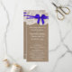 Die rustikal blaue Bogen Hochzeitskollektion ist ein atemberaubendes Design mit einem hübschen rustikalen Burlap-Effekt-Hintergrund mit einem romantischen Vintagen Spitzeneffekt und einem atemberaubenden blauen Bogen. Diese Programme können für Ihren besondere Anlass personalisiert sein und würden die perfekte Vorlage für Hochzeiten, Brautpartys, Verlobungsfeiern, Geburtstagsfeiern und vieles mehr machen. *Bitte beachten Sie, dass Zazzle nur gedruckte Produkte verkauft, sodass dieses Produkt keine echten Bruch-, Spitzen- oder Bänder-/Bogen-Materialien aufweist.