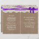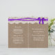 Die rustikale Lila Bogen-Hochzeitskollektion ist ein atemberaubendes Design mit einem hübschen rustikalen Burlap-Effekt-Hintergrund mit einem romantischen Vintagen, weißen Spitzeneffekt und einem atemberaubenden lila Bogen. Diese Programme können für Ihren besondere Anlass personalisiert sein und würden die perfekte Vorlage für Hochzeiten, Brautpartys, Verlobungsfeiern, Geburtstagsfeiern und vieles mehr machen. *Bitte beachten Sie, dass Zazzle nur gedruckte Produkte verkauft, sodass dieses Produkt keine echten Bruch-, Spitzen- oder Bänder-/Bogen-Materialien aufweist.