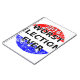 Die schlechtesten Kandidaten aller Zeiten. Kreis in rot, blau und weiß, schwarzer Text mit weißen Konturen. Störungseffekt beim Design.