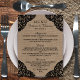 Die schwarze Spitze der rustikalen Hochzeitskollek Menükarte