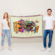 Eine lithographische Darstellung im Retrostil von Harley Quinn, der eine Fahne mit Blume-Explosionen, schweren Regenbögen und farbenfrohen Vögeln hält!