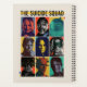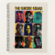 Farbenfrohe Retrogitter mit den Mitgliedern der Suizid Squad: Harley Quinn, Bloodsport, King Shark, Polka-Dot Man, Ratcatcher 2, Javelin, Peacemaker, The Thinker und Colonel Rick Flag.