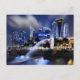 Der Merlion im Merlion Park mit der Skyline von Singapur am Abend im Hintergrund. Die Statue Merlion hat den Körper eines Fisches und den Kopf eines Löwen, steht auf 8,6 Metern und wiegt 70 Tonnen. Foto von Erwin Soo.