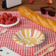 Die sonnengelbe Babydusche kommt hier. Pappteller