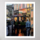 Das ist aus meinem eigenen Acrylgemälde und zeigt die Abenddämmerung auf einem regnerischen Royal Exchange Square in Glasgow, Schottland. Käufer, Touristen und Pendler drängen sich, dem Wetter zu entkommen.