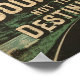 Motivierend Plakat mit Vintagem Design, mit dem Zitat "Kraft liegt in der Reise, nicht am Ziel" über eine landschaftliche Gebirge- und Straßenkunst.