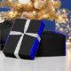 Die symbolische dünne blaue Linie auf schwarz Geschenkpapier