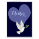 Dieses Bild ist von einer weißen Taube mit einem grünen Blatt, das in der Luft fliegt. Das Herz ist auf der Karte mit einer Aufschrift angeordnet. Es wurde ein dunkelblauer Hintergrund hinzugefügt. Passen Sie sich mit Ihren eigenen Worten an. Eine schöne Karte für Mama.