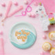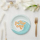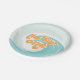 Der große! Surfstrand 1. Geburtstag Party Teller mit türkisfarbenen Wellen und Orangenschrift.